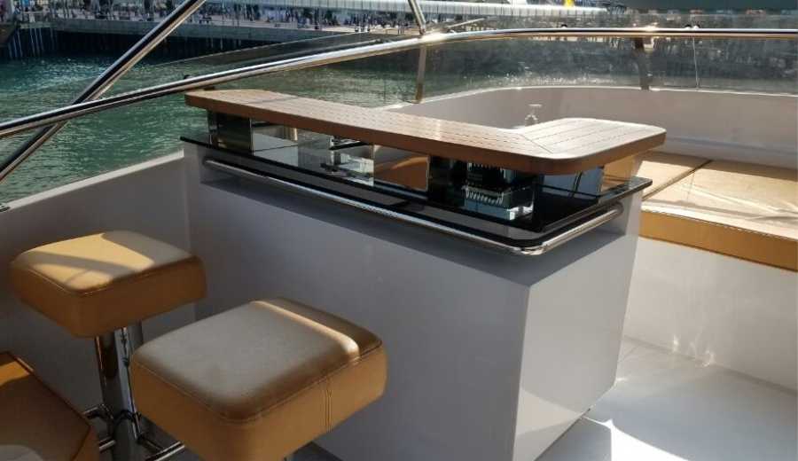 The Caroline is a 92-foot-long luxurious cruiser that can accommodate up to 30 guests. This custom-made boat is perfect for both private and corporate charters as its sleek and elegant design is sure to wow your guests.