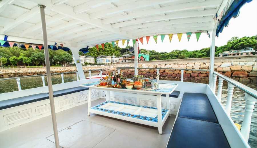 Floatudio can accommodate up to 22 guests making it an ideal vessel for a corporate event, cruise party or simply a mini getaway from the busy streets of Hong Kong. This vessel is fully equipped with an air conditioner, karaoke, superb sound system and bbq facilities for use for your leisure. You can use the upper deck to soak in the sun or use the undercover dining area as your social area. There’s a bathroom on board with kitchen facilities and a lounge area in the lower deck as well.