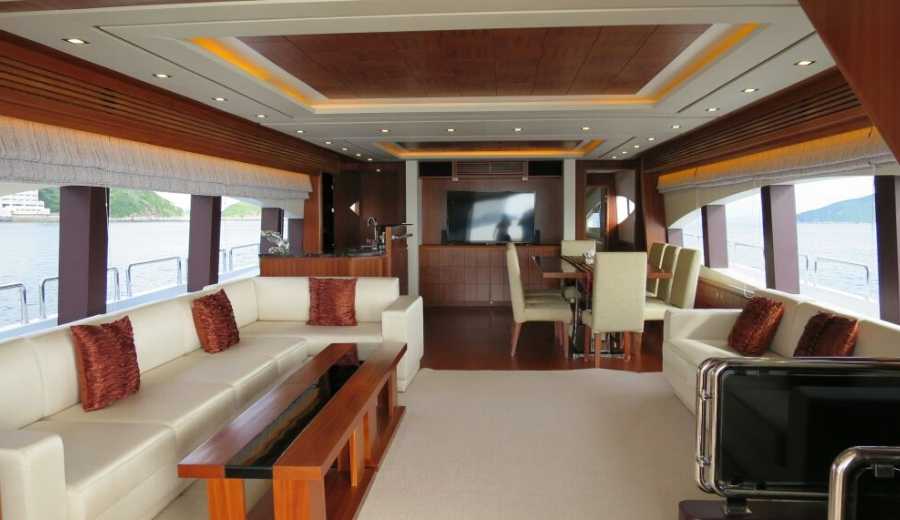 The Lavender is a 92-foot-long motor yacht that can cater to up to 30 guests. It is ideal for daytrips, parties, formal events, and overnight trips as its luxurious decor make it one of the most elegant yachts available for charter in the country.