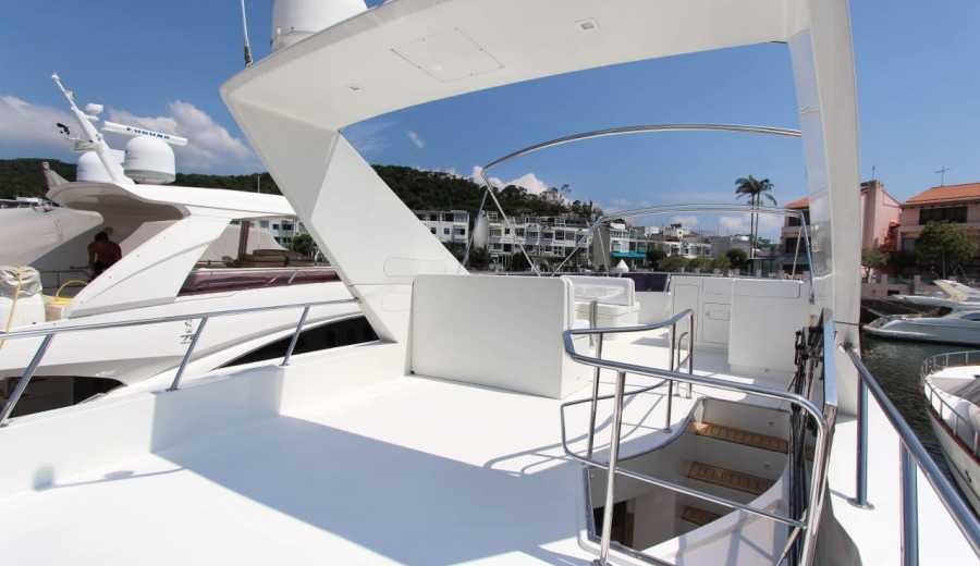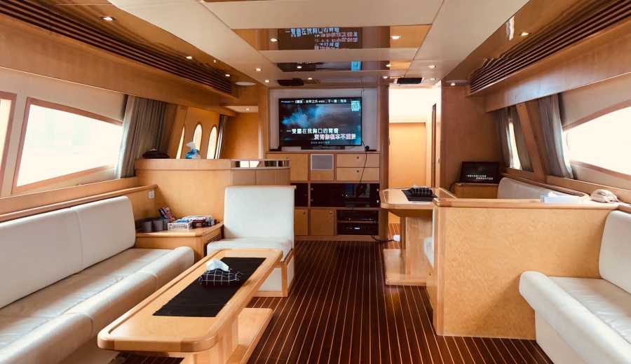 A swim platform at the rear of the boat provides easy access to the water. Guests can ask for an inflatable slide, inflatable trampoline, and inflatable mattress to be added to the rental for some extra fun in the water. Cruise to one of Hong Kong’s secluded bays for a swim or one of its many islands for delicious seafood meal aboard the Lily.